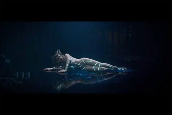 Nella breve clip, estratta dal video ufficiale che uscirà nella notte di giovedì (venerdì mattina in Italia), la cantante appare completamente nuda, indossando solo un body trasparente da cyborg ad effetto nude look, quasi identico a quello di Scarlett Johansson nel film Ghost in the Shell.