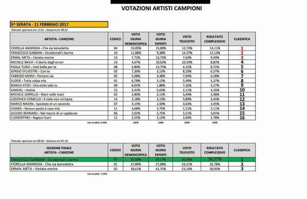 Tutte le votazioni di Sanremo 2017